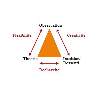 Elle a tout d’abord développé les fondements de l’approche, se basant sur l’interaction de trois éléments : la théorie (formation logopédique, mind mapping, connaissances théoriques HP, gestion mentale, intelligences multiples et thérapie brève orientée solutions), l’observation ainsi que l’intuition et le ressenti.
